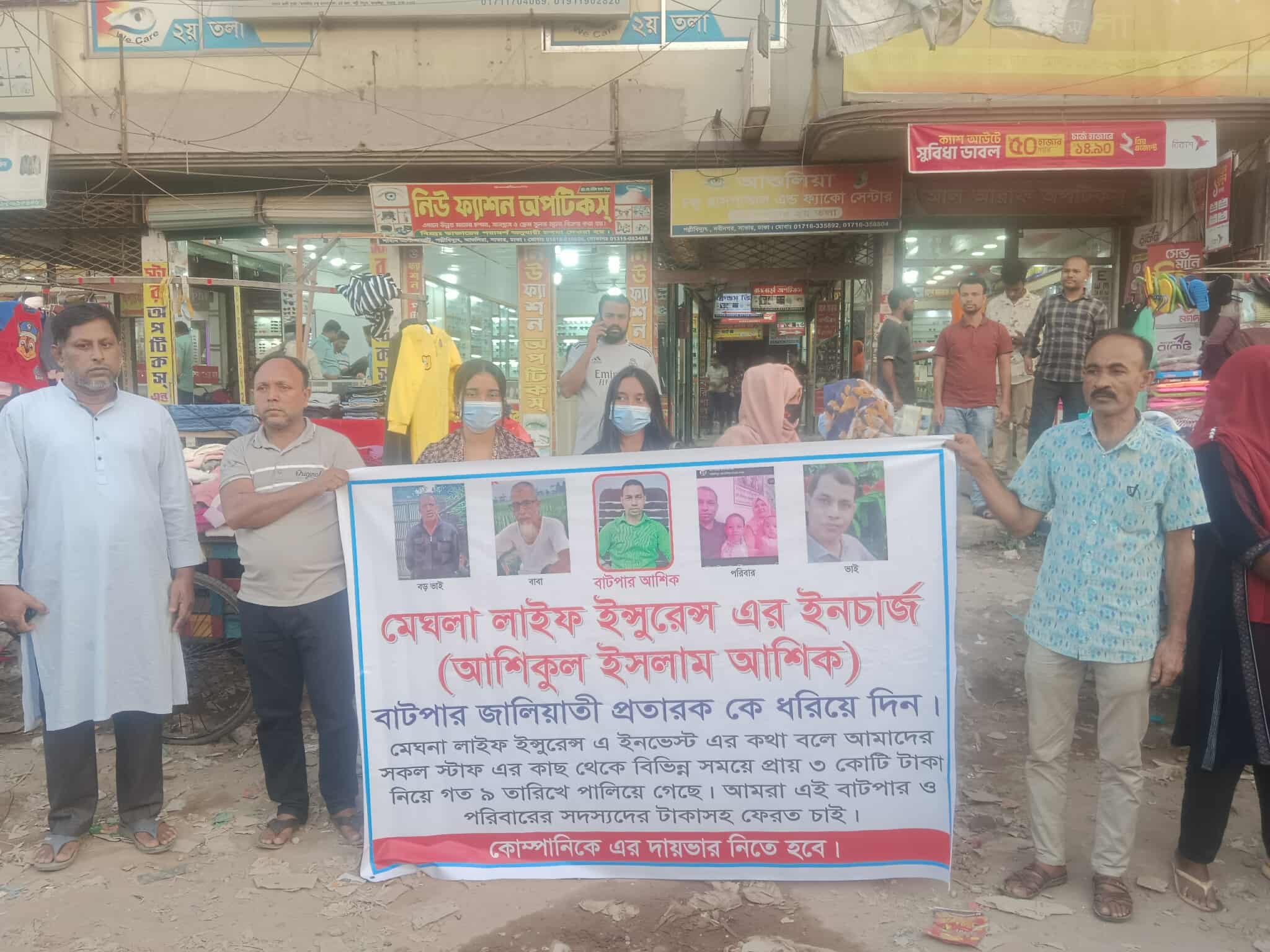 মানববন্ধনে গ্রাহকরা বলেন, বেশ কয়েক বছর ধরে আশুলিয়ার পল্লী বিদুৎ এলাকায় স্থাপিত আশুলিয়া চক্ষু হাসাপাতালের ৪ তলায় মেঘনা লাইফ ইনসুরেন্সের শাখা অফিস খুলে আশিকুর রহমান আশিক ইনসুরেন্সের কার্যক্রম চালিয়ে আসছিলেন। তার অফিসে প্রায় ৩৫ জন স্টাফ কর্মরত ছিলেন। এসময় তিনি বিভিন্ন সময় নিজের ব্যবসার কথা বলে প্রতিটি স্টাফের কাছে থেকে চেক প্রদাণ করে লক্ষ লক্ষ টাকা হাতিয়ে নেয়। হিসেব করে দেখা যায় এভাবে তিনি প্রায় ৩ কোটি হাতিয়ে নিয়ে গত ৯ /১১/২৫ তারিখ থেকে নিখোঁজ রয়েছেন। এমনকি তার মোবাইল ফোনে যোগাযোগ করলে ফোন বন্ধ দেখায়।