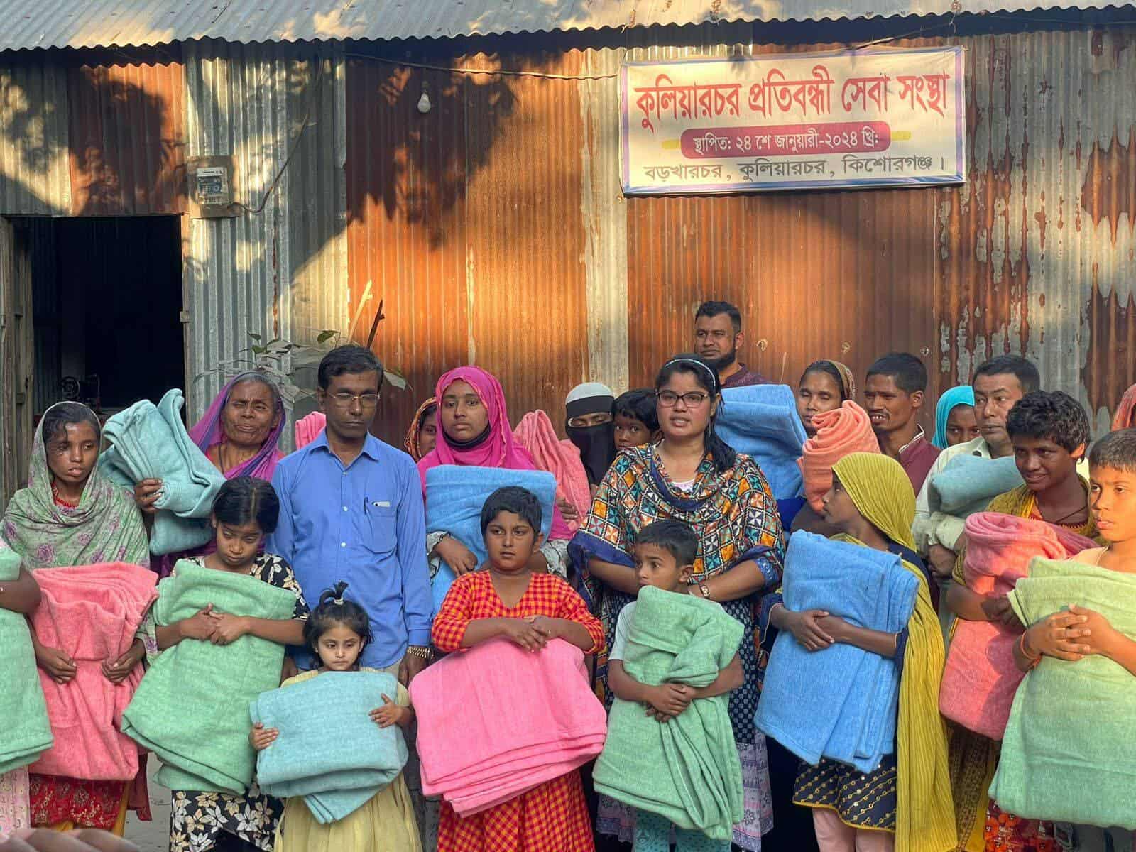 কিশোরগঞ্জের কুলিয়ারচরে প্রতিবন্ধী স্কুলের ৪০ জন প্রতিবন্ধী শিক্ষার্থীর মাঝে শীতবস্ত্র বিতরণ করা হয়েছে ।