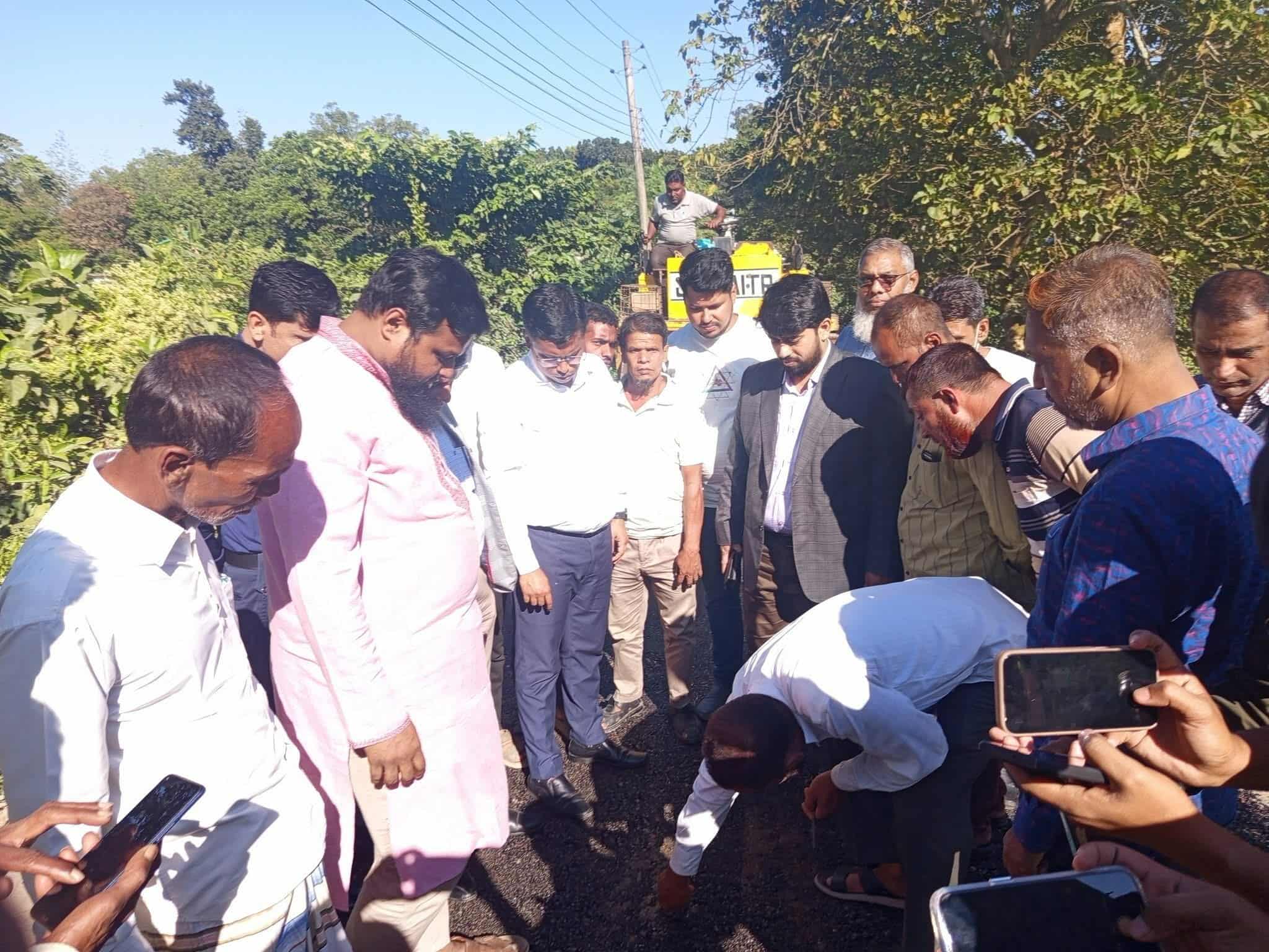 ২৭ নভেম্বর বৃহস্পতিবার দুপুরে পৌর এলাকার ৭নং ওয়ার্ডের দোয়ারিয়া বড় ব্রিজের মাথা হইতে পৌরসভার মোড় পর্যন্ত কার্পেটিং ঢালাই রাস্তার কাজ আনুষ্ঠানিক ভাবে শুভ উদ্বোধন করেন তিনি।