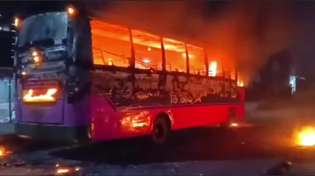 জানা গেছে, মঙ্গলবার দিবাগত রাত সাড়ে ১০টার দিকে চক্রবর্তী এলাকার জ্যোতি পাম্পের পাশে একটি বাস দাঁড়িয়ে ছিল। এ সময় একজন মিস্ত্রি বাসের নিচে শুয়ে মেরামতের কাজ করছিলেন। হঠাৎ একটি মোটরসাইকেলে দুজন যুবক গিয়ে দাহ্য পদার্থ নিক্ষেপ করে বাসে আগুন দেয়।