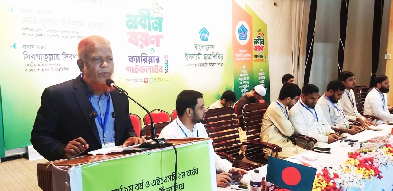 চাঁপাইনবাবগঞ্জের বিভিন্ন কলেজের অনার্স ১ বর্ষ ও এইচএসসি ১ বর্ষের ১২০০ শিক্ষার্থীদের নিয়ে নবীন বরণ ও ক্যারিয়ার গাইডলাইন অনুষ্ঠিত হয়েছে। (৩ নভেম্বর) সোমবার সকাল সাড়ে ১০ টায় শহীদ সাটু হল অডিটোরিয়ামে বাংলাদেশ ইসলামী ছাত্রশিবির, নবাবগঞ্জ সরকারি কলেজ শাখা আয়োজিত অনুষ্ঠানে প্রধান অতিথি’র বক্তব্য রাখেন ইসলাম ছাত্রশিবিরের সাবেক কেন্দ্রীয় সভাপতি ও নবাবগঞ্জ সরকারি কলেজের সাবেক ভিপি মোঃ নূরুল ইসলাম বুলবুল। তিনি বলেন, সুশিক্ষা ও সঠিক দিকনির্দেশনা প্রাপ্তির মাধ্যমে শিক্ষার্থীরাই আগামীর আলোকিত বাংলাদেশ গড়ে তুলবে। দেশ ও জাতি গঠনের নেতৃত্ব গ্রহণের পাশাপাশি আগামীর যে কোন চ্যালেঞ্জ মোকাবেলায় নবীনদের যোগ্য, দক্ষ, সৎ চরিত্রবান হিসাবে নিজেদেরকে গড়ে তুলতে হবে। তিনি আরো বলেন, ইসলামী ছাত্রশিবির শিক্ষার্থীদের গুণগত পরিবর্তনের ধারাবাহিক প্রচেষ্টা চালিয়ে যাচ্ছে। আমরা চাই, প্রতিটি শিক্ষার্থী জ্ঞান-বিজ্ঞানে পারদর্শী হয়ে নৈতিক নেতৃত্বের ভিত্তি শক্ত করুক। দেশের ভবিষ্যৎ নির্মাণে তরুণরাই প্রধান চালিকাশক্তি। আদর্শ চরিত্র গঠনের প্রতিও যতœবান হতে হবে।। প্রধান বক্তা হিসেবে বক্তব্য রাখেন বাংলাদেশ ইসলামী ছাত্রশিবির কেন্দ্রীয় অফিস সম্পাদক সিবগাতুল্লাহ সিবগা। সংগঠনের কলেজ শাখার সভাপতি মোঃ রবিউল ইসলামের সভাপতিত্বে অন্যদের মধ্যে বক্তব্য রাখেন ইসলামী ছাত্রশিবিরের কেন্দ্রীয় সাংস্কৃতিক বিষয়ক সম্পাদক এইচ এম আবু মুসা, রাকসুর নবনির্বাচিত ভিপি মোঃ মোস্তাকিনুর রহমান জাহিদ প্রমুখ। এসময় উপস্থিত ছিলেন পৌর জামায়াতের আমীর হাফেজ গোলাম রাব্বানী, সদর উপজেলা জামায়াতের আমীর হাফেজ মাওলানা আব্দুল আলিম, এ্যাডভোকেট এনাতুল্লাহ শফিক, নবাবগঞ্জ সরকারি কলেজ শাখা ছাত্রশিবিরের সেক্রেটারি মোঃ আবু রায়হান আলী প্রমূখ।