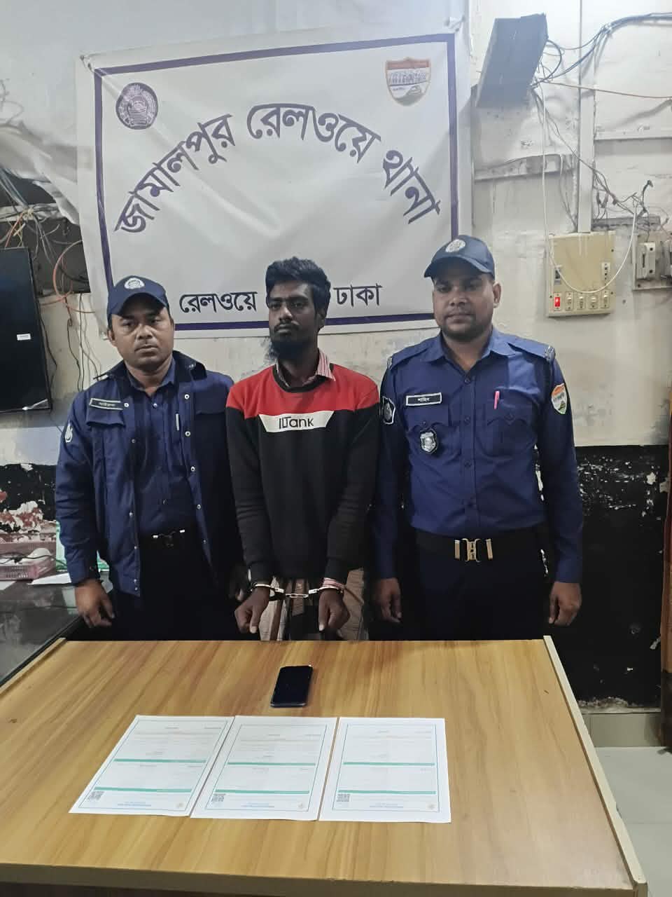 গোয়েন্দা তথ্যের ভিত্তিতে অদ্য ১৬ ডিসেম্বর দুপুর আনুমানিক ২টা ৩০ মিনিটে জামালপুর রেলওয়ে থানাধীন পিয়ারপুর রেলওয়ে স্টেশন এলাকায় এ অভিযান পরিচালনা করা হয়। অভিযানে মোঃ খোকন আলী (৩৪) নামে এক ব্যক্তিকে গ্রেপ্তার করা হয়।