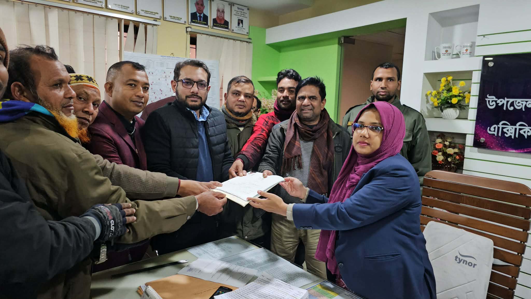 নির্বাচনী বিধি অনুসরণ করে পাঁচ সদস্যের একটি প্রতিনিধি দল নিয়ে তিনি উপজেলা নির্বাহী কর্মকর্তা মাসতুরা আমিনার হাতে মনোনয়নপত্র জমা দেন। মনোনয়ন জমাদানকে কেন্দ্র করে পুরো উপজেলা প্রাঙ্গণ ও আশপাশের এলাকা উৎসবমুখর পরিবেশে রূপ নেয়। পরিস্থিতি নিয়ন্ত্রণে আইনশৃঙ্খলা বাহিনী সতর্ক অবস্থানে ছিল।