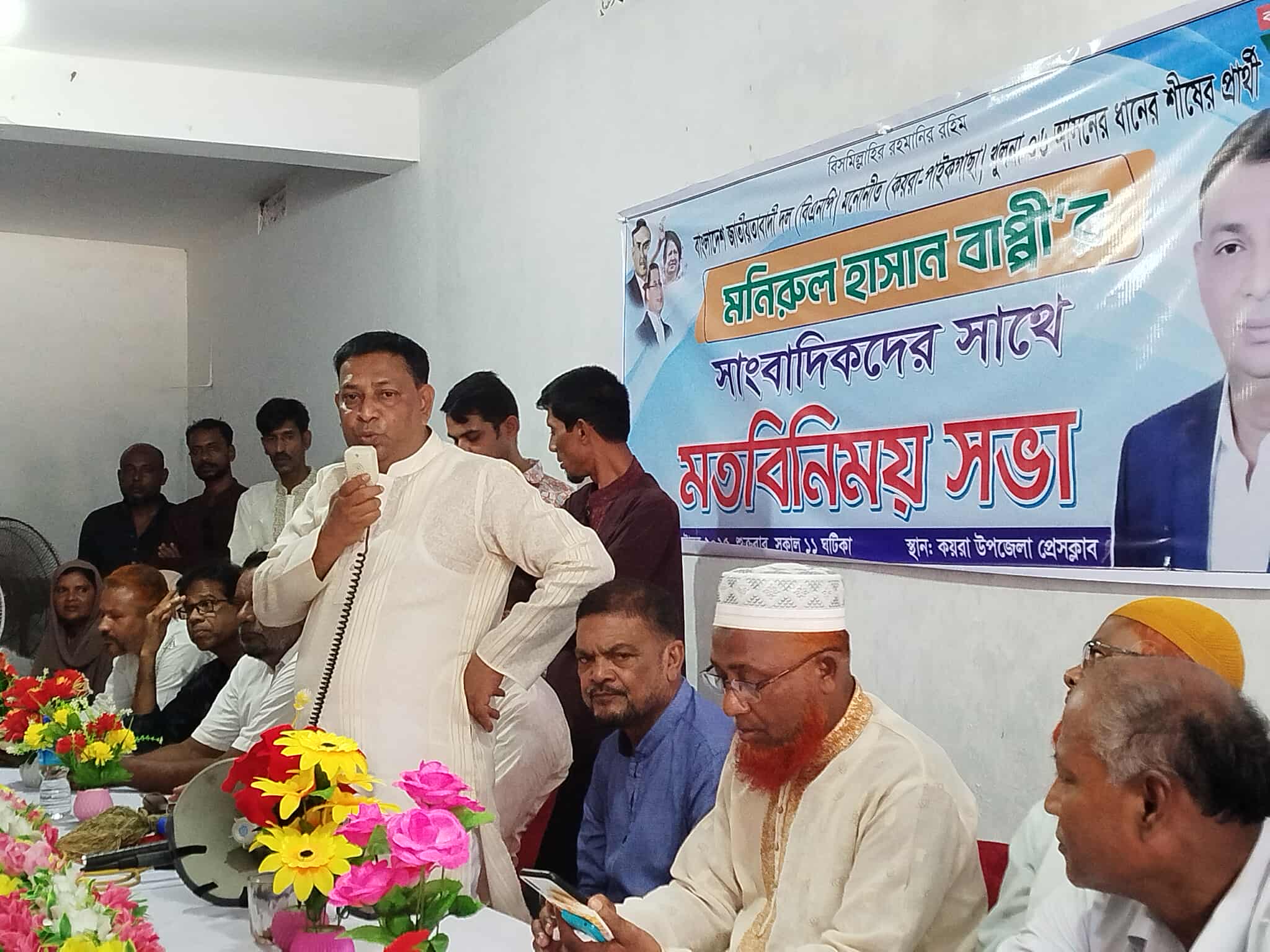 বৃহস্পতিবার (৭ নভেম্বর) বেলা ১১ টায় কয়রা উপজেলায় তার নির্বাচনী কার্যালয়ে সাংবাদিকদের সাথে মতবিনিময় সভায় প্রধান অতিথির বক্তব্য এ কথা বলেন। মত বিনিময় সভায় কয়রা উপজেলা প্রেসক্লাবের সাংবাদিকরা উপস্থিত ছিলেন।