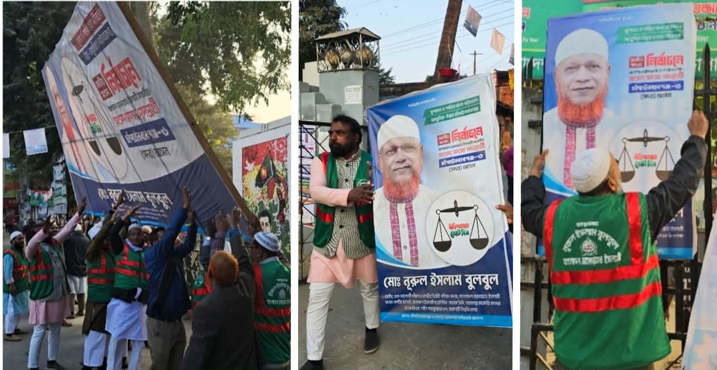 আসন্ন এয়োদশ জাতীয় সংসদ নির্বাচনের তফসিল ঘোষণা এবং সংশোধিত আরপিও অনুযায়ী ৪৮ ঘণ্টার মধ্যে সকল প্রচার উপকরণ অপসারণের নির্দেশনার প্রেক্ষিতে বাংলাদেশ জামায়াতে ইসলামী চাঁপাইনবাবগঞ্জ জেলা শাখার উদ্যোগে আজ বাদ আসর থেকে প্রচারসামগ্রী অপসারণ কার্যক্রম শুরু হয়েছে। গতকাল (১২ ডিসেম্বর) শুক্রবার বিকাল ৪ ঘটিকায় চাঁপাইনবাবগঞ্জ শহরের বড় ইন্দারা মোড় থেকে দাঁড়িপাল্লা প্রতীকের পোস্টার, ব্যানার, বিলবোর্ড ও অন্যান্য প্রচার উপকরণ অপসারণের মাধ্যমে এ কার্যক্রমের আনুষ্ঠানিক উদ্বোধন করা হয়। জেলা জামায়াতের আমীর মাওলানা আবু জার গিফারী বলেন,“নির্বাচন কমিশনের নির্দেশনাকে সম্মান জানিয়ে ও আমীরে জামায়াত ডা. শফিকুর রহমানের নির্দেশনায় আমরা অপসারণ কার্যক্রম শুরু করেছি। চাঁপাইনবাবগঞ্জ জেলাজুড়ে দাঁড়িপাল্লা প্রতীকের যেসব পোস্টার, ব্যানার, বিলবোর্ড ও ফেস্টুন রয়েছে, সেগুলো দ্রুত অপসারণের জন্য আমরা সংশ্লিষ্ট সবাইকে আহ্বান জানাচ্ছি।