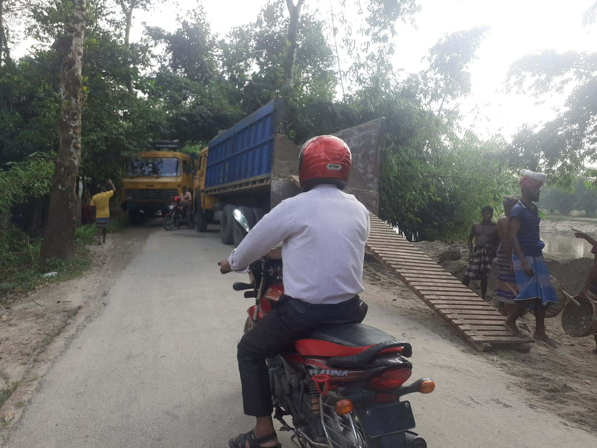 পঞ্চগড়ের গ্রামীণ সড়ক গুলো দিয়ে বাইক নিয়ে চলাচল মানেই বিপদ, গ্রামীন সড়ক গুলোর ধারন ক্ষমতা না থাকলেও কর্তৃপক্ষের নাকের ডগার উপর দিয়ে দিব্যি চলছে দশ চাকার অভার লোডিং বালু পাথর বোঝাই ট্রাক।