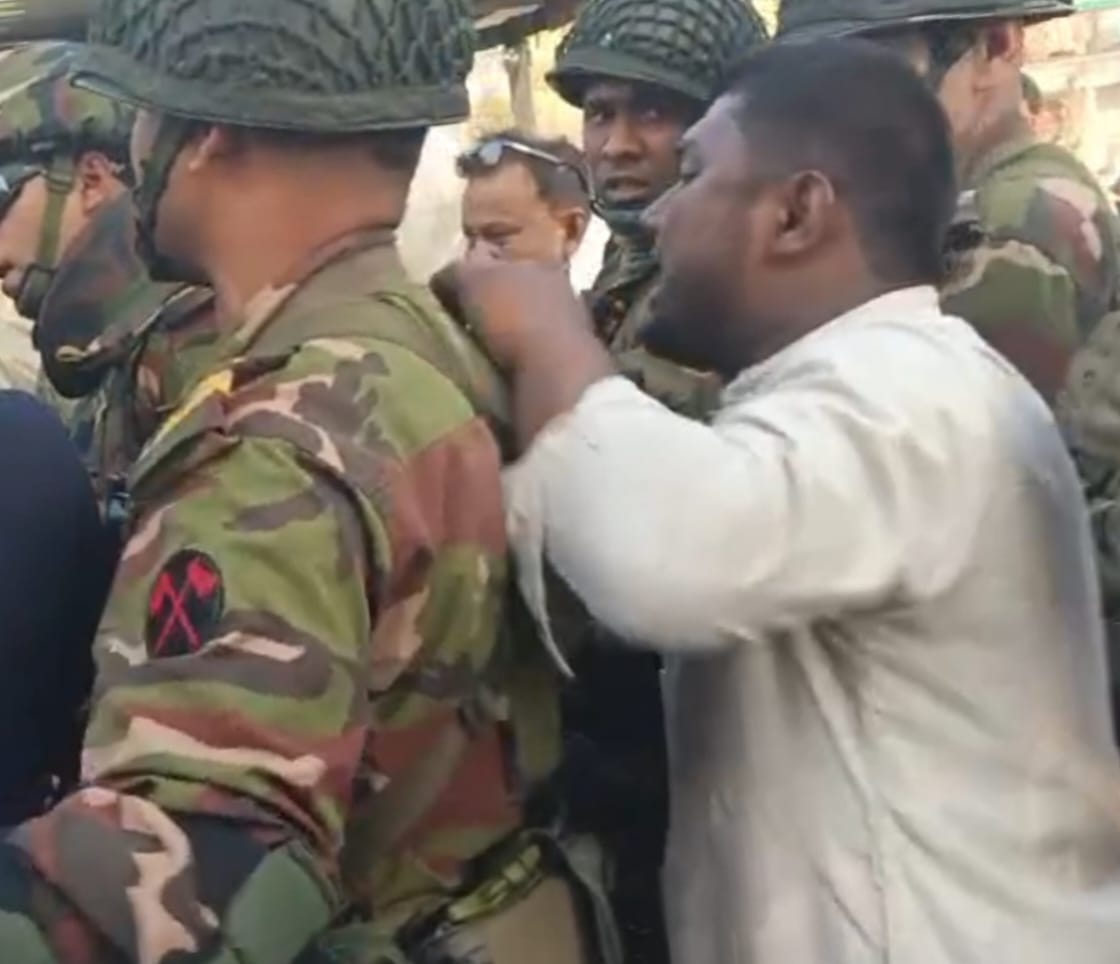 বিষয়টি প্রশাসনের নজরে পড়লে সেনাবাহিনীরা তাদেরকে মেন সড়ক ছেড়ে দিয়ে বিক্ষোভ করার কথা বলেন। প্রশাসনের কথা অমান্য করায় পরবর্তীতে বিক্ষোভকারীদের কে বাধা প্রদান করেল এতে বিক্ষোভ সমাবেশটি ছত্রভঙ্গ হয়ে পরে
