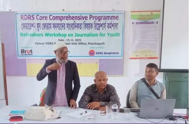 আরডিআরএস কোর কম্প্রিহেনসিভ প্রোগ্রামের আওতায় ওই প্রশিক্ষণ কর্মশালায় প্রশিক্ষক হিসেবে উপস্থিত ছিলেন জ্যেষ্ঠ সাংবাদিক শহিদুল ইসলাম শহীদ ও সামসউদ্দীন চৌধুরী কালাম। সকালে কর্মশালার উদ্বোধনী অনুষ্ঠানে আরডিআরএস কোর কম্প্রিহেনসিভ প্রোগ্রামের কমিউনিটি ডেভলপমেন্ট সুপারভাইজার মো. আতিকুর রহমান আতিক, সিএম নার্গিস বেগম প্রমুখ উপস্থিত ছিলেন। দিনব্যাপী ওই প্রশিক্ষণে সাংবাদিকতার মূলনীতি ও নীতি শাস্ত্র, তথ্য সংগ্রহ ও যাচাই করন, সংবাদ লেখা ও সম্পাদনা, অনুসন্ধানী সাংবাদিকতা, তথ্য অধিকার আইন সহ সাংবাদিকতার বিভিন্ন বিষয়ে আলোচনা করা হয়। কর্মশালায় পঞ্চগড় জেলার পাঁচ উপজেলা থেকে ২৫ জন যুব ফোরাম সদস্য প্রশিক্ষনার্থী হিসেবে অংশগ্রহণ করে। #