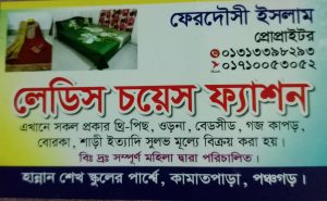 ফেরদৌস ইসলাম তার স্বামী শরিফুল ইসলাম এর সহযোগিতায় ও উৎসাহে ঘরে বসে বিজনেসের আগ্রহী হয়েছিলেন। পঞ্চগড় পৌরসভা ৫ নং ওয়ার্ড কামাতপাড়া এলাকার ভাড়া বাসায় গড়ে তুলেছেন লেডিজ চয়েস ফ্যাশন নামে একটি পেইজ,