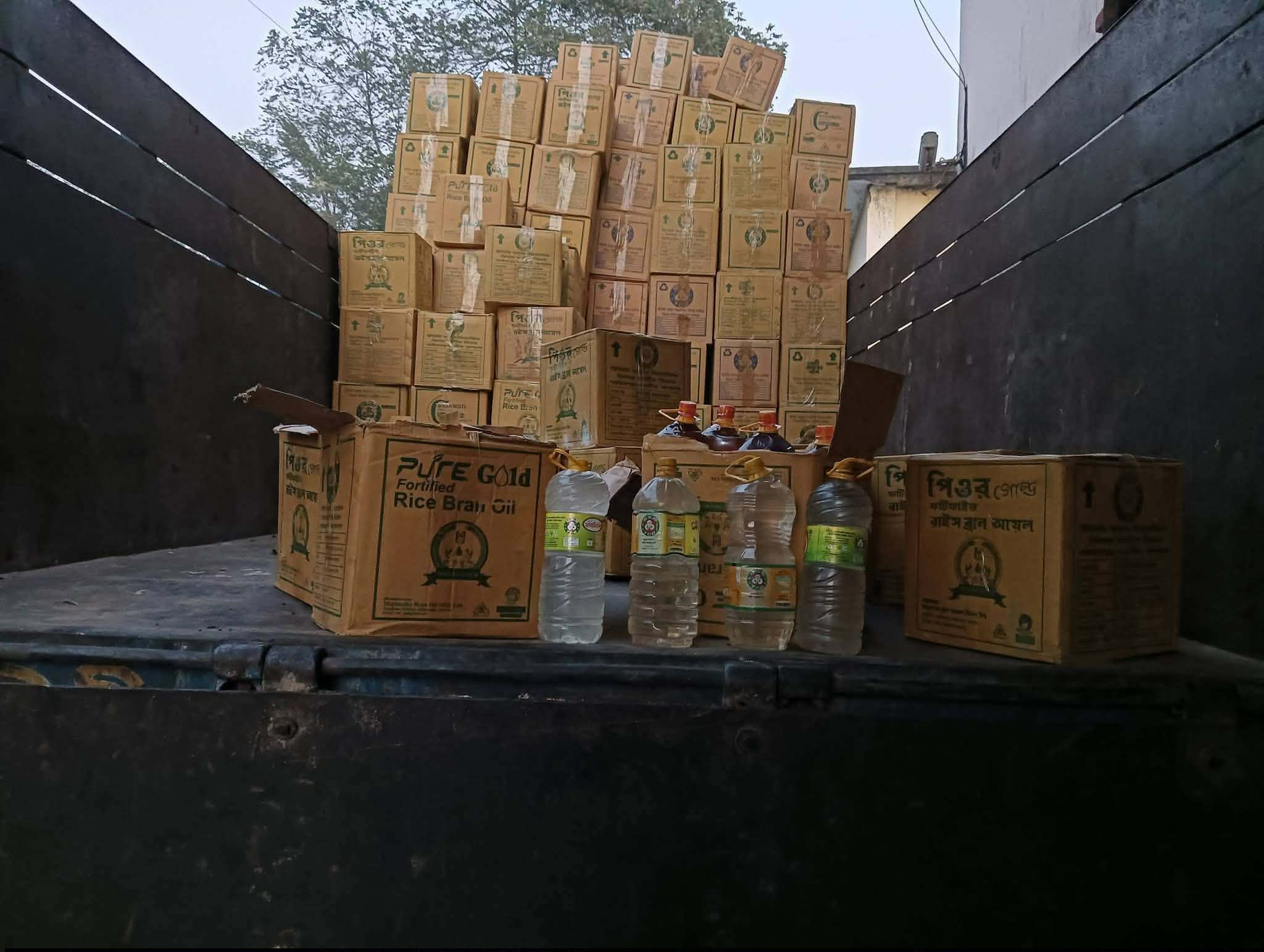 পঞ্চগড় বোদা উপজেলার খাদ্য গোডাউন থেকে অভিযোগ পাওয়া গেছে টিসিবি পণ্যের কার্টুন থেকে ভোজ্যতেলের পরিবর্তে মিলেছে পানির বোতল। (বুধবার ১৮ফেব্রুয়ারি ২০২৬), পবিত্র মাহে রমজান কে সামনে রেখে দিনাজপুর দশ মাইল থেকে যে টিসিবি পণ্য বোদা উপজেলার খাদ্য গোডাউনে এসেছে সেই টিসিবি পণ্য ট্রাক থেকে আনলোড করার সময় ছেঁড়া কার্টুন থেকে লেভারদের চোখে পড়ে সাদা পানির বোতল। পরে তারা বেশ কয়েকটি সোয়াবিন তেলের কাটুন খুলে দেখতে পায় সয়াবিন তেলের পরিবর্তে বোতলে সাদা পানি। ঠিক ওই মুহূর্তে বিষয়টি নিয়ে বোদা উপজেলার খাদ্য গোডাউন ও আশপাশের মানুষের মধ্যে হইচই শুরু হয়। এছাড়াও গত বাড়ের আগেরবার টিসিবি বক্তাদের অভিযোগ ছিল তাদেরকে সোয়াবিন তেলের পরিবর্তে নিম্নমানের পামওয়েল তেল দিয়েছিল। এ বিষয়ে কর্তৃপক্ষের কাছে জানতে চাইলে তারা বিষয়টি আমলে না নিয়ে উড়িয়ে দেয়। কিন্তু ভাববার বিষয় এবার আর পামওয়েল তেল নয় সরাসরি সয়াবিন তেলের বোতলে তারা সাদা পানি ঢুকিয়ে সরবরাহ করেছেন বলে প্রমাণ পাওয়া গেছে। এ বিষয়ে পঞ্চগড় বোদা উপজেলার খাদ্য গোডাউনের এল এস ডি ওসি সত্যতা স্বীকার করে বলেন যে আজকে দিনাজপুর দশ মাইল থেকে টিসিবি পণ্যের যে ট্রাকটি গোডাউনে ঢুকে ওই ট্রাক থেকে লেভার যখন টিসিবি পণ্য আনলোড করতে যায় তখন তাদের চোখে পড়ে সাদা পানি ভর্তি বোতল তখন তারা আমাকে জানায়।