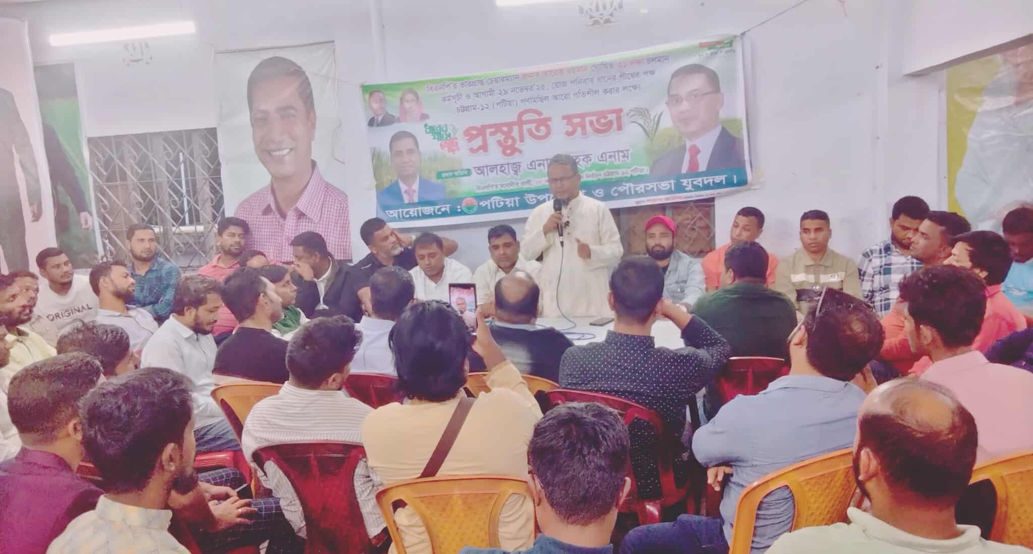২৭ নভেম্বর বৃহস্পতিবার বিকালে দলীয় কার্য়লয়ে চট্টগ্রামের পটিয়া উপজেলা, পৌরসভা জাতীয়তাবাদী যুবদলের প্রস্তুতি সভা পটিয়া উপজেলা যুবদলের আহবায়ক ইয়াছিন আরফাত এর সভাপতিত্বে অনুষ্ঠিত হয়।