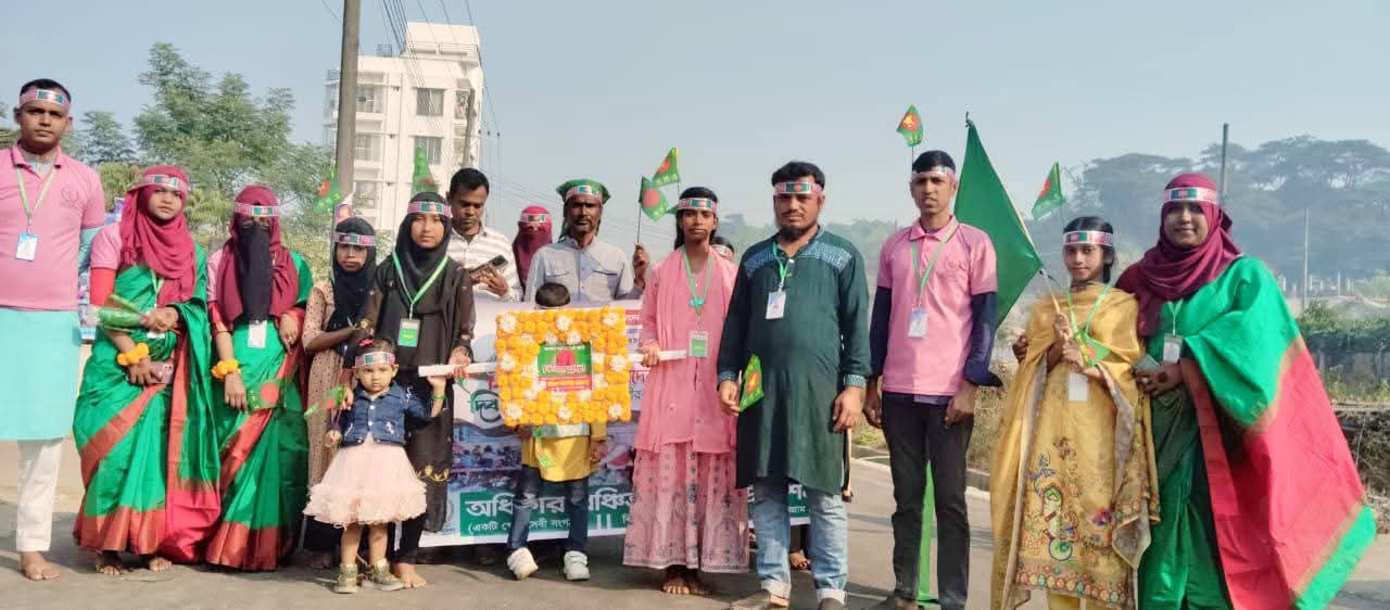 সকাল আটটায় বিজয় দিবসের র্যালির মাধ্যমে কর্মসূচির সূচনা হয়। র্যালিটি বিশ্ব কলোনি লেক সিটি থেকে শুরু হয়ে সিডি এক নম্বর পর্যন্ত প্রদক্ষিণ করে। পরে আকবরশাহ থানার সামনে শহীদ মিনারে পুষ্পস্তবক অর্পণের মাধ্যমে শ্রদ্ধা জানানো হয়। র্যালিতে সংগঠনের সদস্যদের পাশাপাশি বিভিন্ন শিক্ষাপ্রতিষ্ঠানের ছাত্রছাত্রীরা অংশগ্রহণ করে।