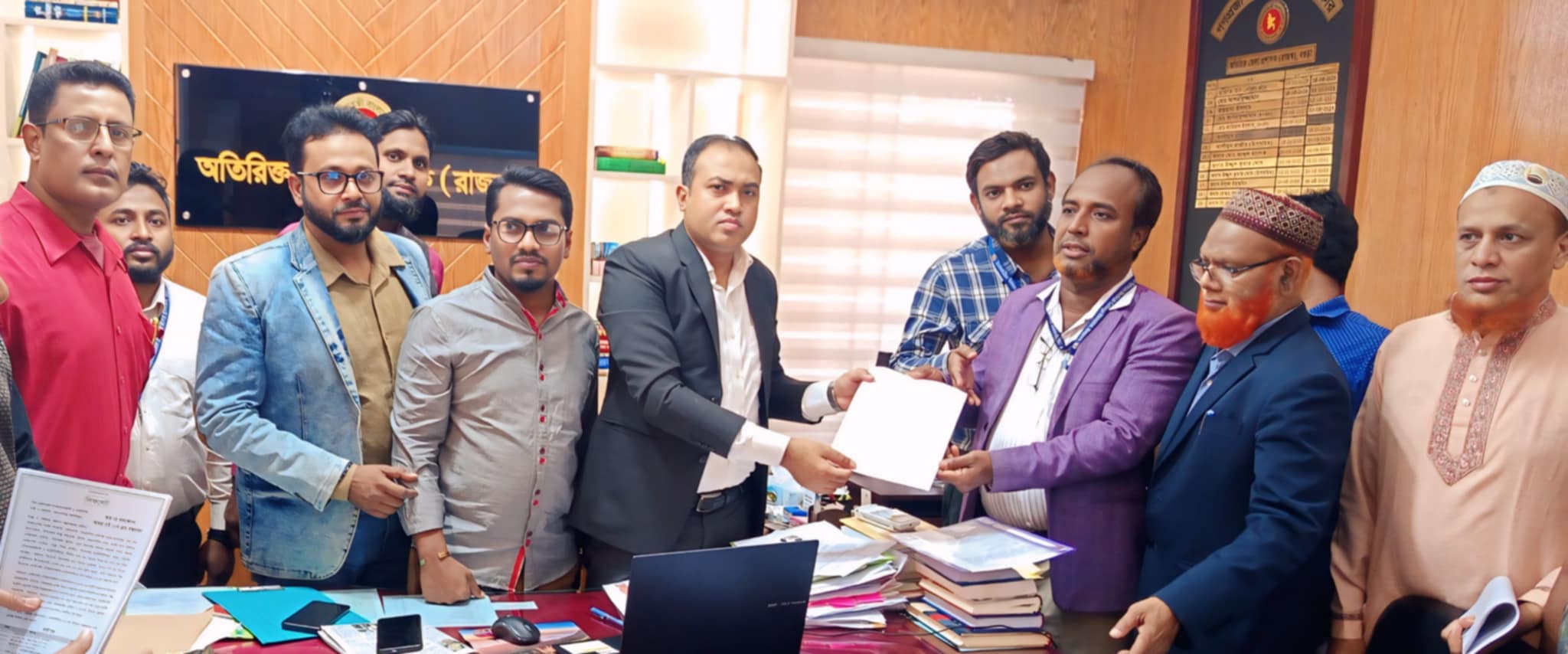 নিজস্ব প্রতিবেদক:- দীর্ঘদিনের ন্যায্য দাবি ১০ম গ্রেড বাস্তবায়ন নিশ্চিতের দাবিতে কেন্দ্রীয় কর্মসূচির অংশ হিসেবে বগুড়ায় মেডিকেল টেকনোলজিস্ট এবং ফার্মাসিস্টদের উদ্যোগে স্বারকলিপি প্রদান কর্মসূচি অনুষ্ঠিত হয়েছে। বৃহস্পতিবার (২৭ নভেম্বর) দুপুরে বগুড়া জেলা প্রশাসক (ডিসি) কার্যালয়ে অতিরিক্ত জেলা প্রশাসক (এডিসি) পি.এম. ইমরুল কায়েস বরাবর এ স্বারকলিপি প্রদান করা হয়।