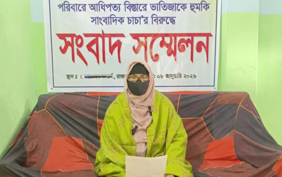 বৃহস্পতিবার (৮ জানুয়ারি) দুপুরে রাজশাহী মহানগরীর অনুরাগ কমিউনিটি সেন্টারে আয়োজিত এক সংবাদ সম্মেলনে এসব অভিযোগ করেন ভুক্তভোগী আরমিনা আক্তার।