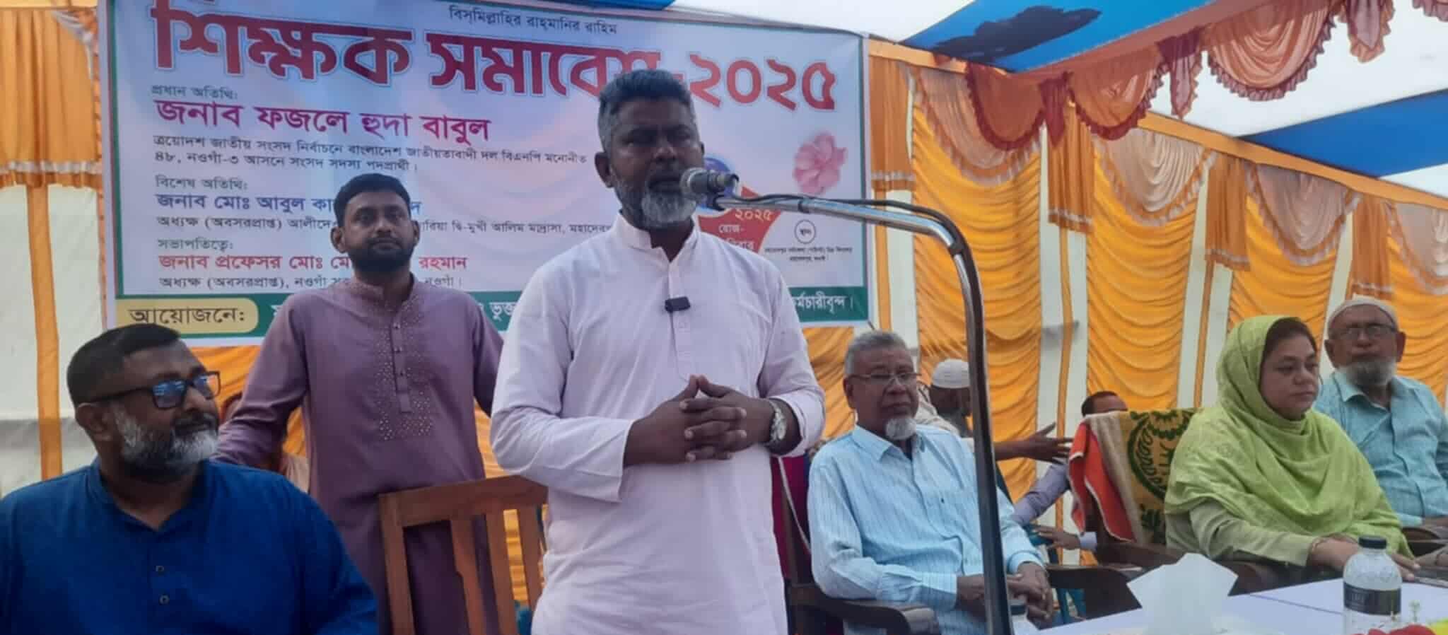 কৃষক দলের কেন্দ্রীয় কমিটির যুগ্ম সাধারণ সম্পাদক ও মহাদেবপুর–বদলগাছী আসনের বিএনপির মনোনীত এমপি প্রার্থী ফজলে হুদা বাবুল বলেছেন, শিক্ষকদের চিন্তা-চেতনা হবে কেবল ছাত্রদের ভবিষ্যৎ নিয়ে। কোনো শিক্ষক দলীয় রাজনীতির প্রভাবে নয়, সত্য ও ন্যায়ের পথে চলবেন।শনিবার দুপুরে মহাদেবপুরের সর্বমঙ্গলা পাইলট উচ্চ বিদ্যালয় প্রাঙ্গণে আয়োজিত শিক্ষক সমাবেশে প্রধান অতিথির বক্তব্যে তিনি এসব কথা বলেন।