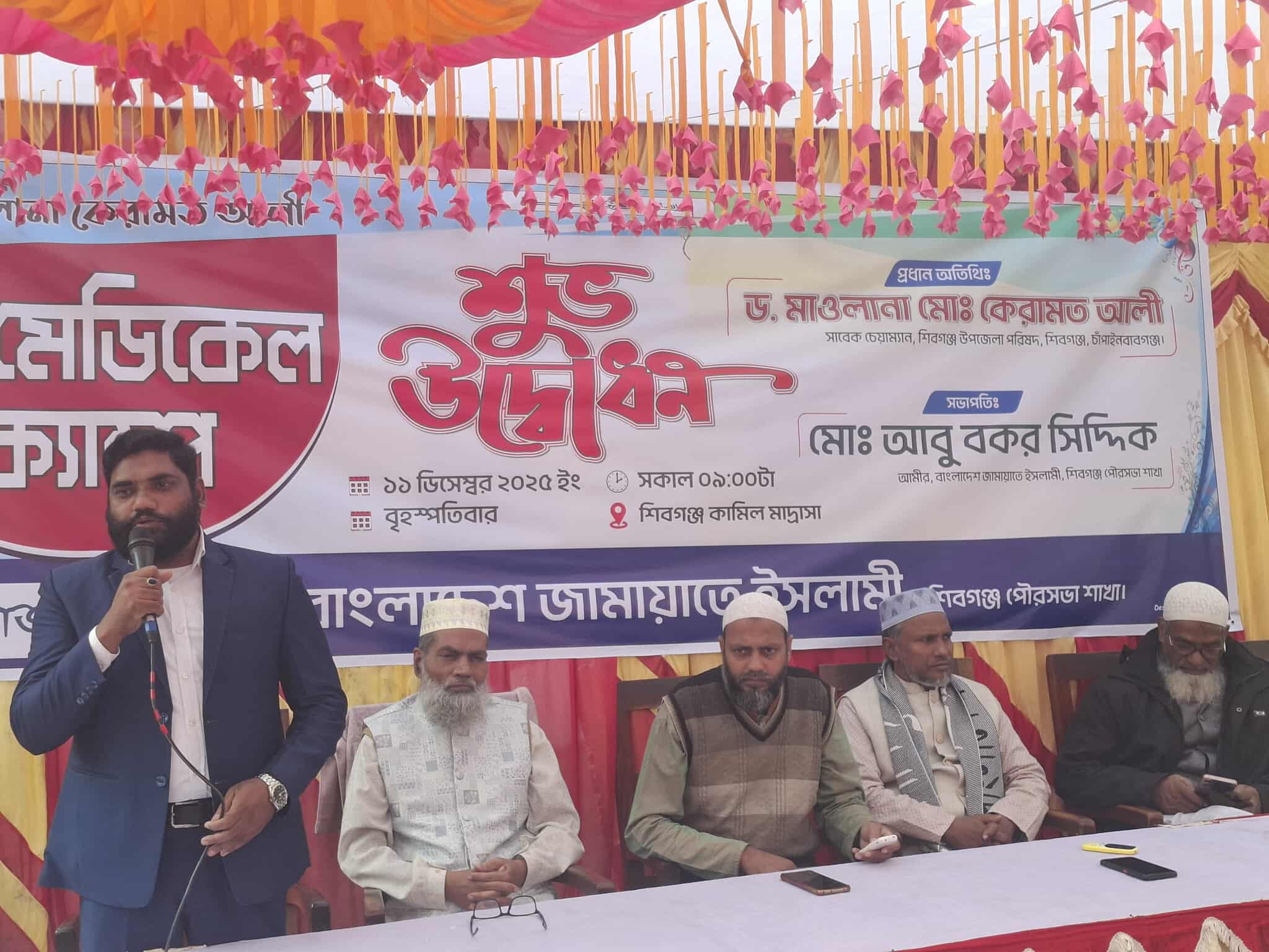 চাঁপাইনবাবগঞ্জের শিবগঞ্জ পৌরসভায় বাংলাদেশ জামায়াতে ইসলামী শিবগঞ্জ পৌর শাখার উদ্যোগে দিনব্যাপী ফ্রি মেডিকেল ক্যাম্প আয়োজন করা হয়। সোমবার (১১ ডিসেম্বর ২০২৫) সকাল ৯টায় শিবগঞ্জ কামিল মাদ্রাসা প্রাঙ্গণে এ ক্যাম্পের আনুষ্ঠানিক উদ্বোধন করা হয়।