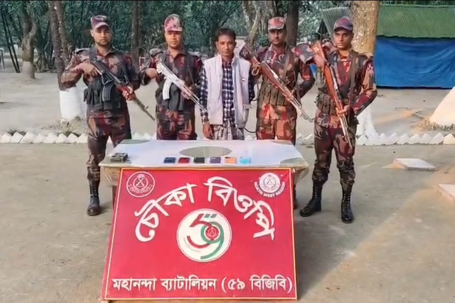 চাঁপাইনবাবগঞ্জে মহানন্দা ব্যাটালিয়ন ৫৯ বিজিবির বিশেষ গোপন সংবাদের ভিত্তিতে ব্যাটালিয়নের অধীনস্থ চৌকা বিওপি’র একটি বিশেষ টহল দল বেলা ০২:৪৫ ঘটিকায় বিওপি’র দায়িত্বপূর্ণ এলাকায় এ অভিযান পরিচালনা করে। উক্ত অভিযানে সীমান্ত পিলার ১৭৭/২-এস হতে আনুমানিক ৮০০ গজ বাংলাদেশের অভ্যন্তরে চাঁপাইনবাবগঞ্জ জেলার শিবগঞ্জ থানাধীন বিনোদপুর ইউনিয়নের বাখের আলী গ্রাম হতে ০৬টি ভারতীয় বিভিন্ন মডেলের ব্যবহৃত চোরাই মোবাইল ফোনসহ চাঁপাইনবাবগঞ্জে শিবগঞ্জ উপজেলায় কালুপুর গ্রামের মৃত নুরুল ইসলামের ছেলে মোঃ সাগর ইসলাম (৪০) কে আটক করেছে। বর্তমানে আটককৃত আসামীসহ মোবাইল ফোনগুলো শিবগঞ্জ থানায় হস্তান্তরের কার্যক্রম চলমান রয়েছে।