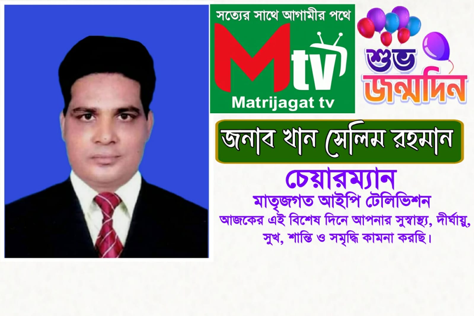 তাঁর জন্মদিনে মাতৃজগত পরিবারসহ সাংবাদিক সমাজ তাঁকে জানাচ্ছে আন্তরিক শুভেচ্ছা, শ্রদ্ধা ও ভালোবাসা।