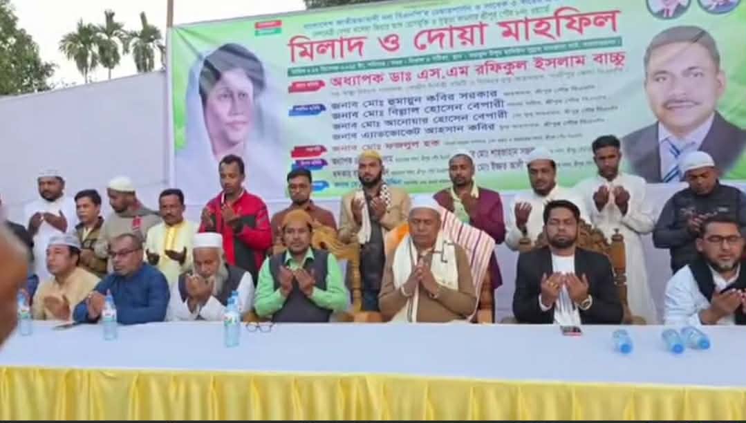 গাজীপুরের শ্রীপুরে সাবেক প্রধানমন্ত্রী ও বিএনপির চেয়ারপার্সন, দেশনেত্রী বেগম খালেদা জিয়ার রোগমুক্তি কামনায় শ্রীপুর পৌর বিএনপির আহ্বায়ক সদস্য ফজলুল হকের আয়োজনে মিলাদ ও দোয়া অনুষ্ঠিত হয়েছে। গতকাল শনিবার বিকাল ৪ টায় শ্রীপুর পৌর ৮ নং ওয়ার্ডের দারগারচালা ফয়জুল হামিউস সুন্নাহ মাদ্রাসা মাঠে মাদ্রাসার এতিম ছাত্রদের নিয়ে মিলাদ ও দোয়া মাহফিল অনুষ্ঠিত হয়। প্রধান অতিথি হিসেবে উপস্থিত ছিলেন, বিএনপির কেন্দ্রীয় দ ১ কমিটির সহ-স্বাস্থ্য বিষয়ক সম্পাদক ও গাজীপুর-৩ আসনের বিএনপির মনোনীত এমপি প্রার্থী অধ্যাপক ডাক্তার এস এম রফিকুল ইসলাম বাচ্চু। প্রধান অতিথির বক্তব্যে ডাক্তার রফিকুল ইসলাম বাচ্চু বলেন, দেশের সর্বস্তরের মানুষের ভালোবাসা ও দোয়ায় আমাদের দেশনেত্রী আল্লাহর রহমতে সুস্থ হয়ে উঠবেন। তাঁর দ্রুত সুস্থতা কামনায় সবার কাছে দোয়া চাই। আমরা দোয়া করি বেগম খালেদা জিয়া যেন সুস্থ হয়ে আবারও দেশের কল্যাণে নেতৃত্বের হাল ধরতে পারেন। অনুষ্ঠানে সম্মানিত অতিথি হিসেবে উপস্থিত ছিলেন, শ্রীপুর পৌর বিএনপির সিনিয়র যুগ্ম আহ্বায়ক আনোয়ার হোসেন বেপারী, যুগ্ম আহ্বায়ক এডভোকেট আহসান কবির। গাজীপুর জেলা কৃষক দলের আহ্বায়ক এস এম আবুল কালাম আজাদ, শ্রীপুর পৌর ৮ নং ওয়ার্ড বিএনপির সাবেক সাধারণ সম্পাদক ও পৌর বিএনপির আহ্বায়ক সদস্য ফজলুল হকের সভাপতিত্বে বিশেষ অতিথি হিসেবে ছিলেন, শ্রীপুর পৌর বিএনপির আহ্বায়ক সদস্য শাজাহান সজল, অধ্যাপক রফিকুল ইসলাম, অনুষ্ঠানের সঞ্চালনা করেন, পৌর ৮ নং ওয়ার্ড শ্রমিক দলের সভাপতি জালাল উদ্দিন, এসময় আরো উপস্থিত ছিলেন পৌর ৯ নং ওয়ার্ড বিএনপির সাবেক সভাপতি মাহমুদুল হাসান আলালসহ বিএনপির অঙ্গ ও সহযোগী সংগঠনের নেতৃবৃন্দএবং স্থানীয় লোকজন। অনুষ্ঠান শেষে সাবেক প্রধানমন্ত্রী ও বিএনপির চেয়ারপার্সন বেগম খালেদা জিয়ার রোগমুক্তি কামনায় দোয়া প্রার্থনা করেন। দোয়া শেষে মাদ্রাসার এতিম শিক্ষার্থীসহ স্থানীয় লোকজনের মধ্যে খাবার বিতরণ করা হয়।