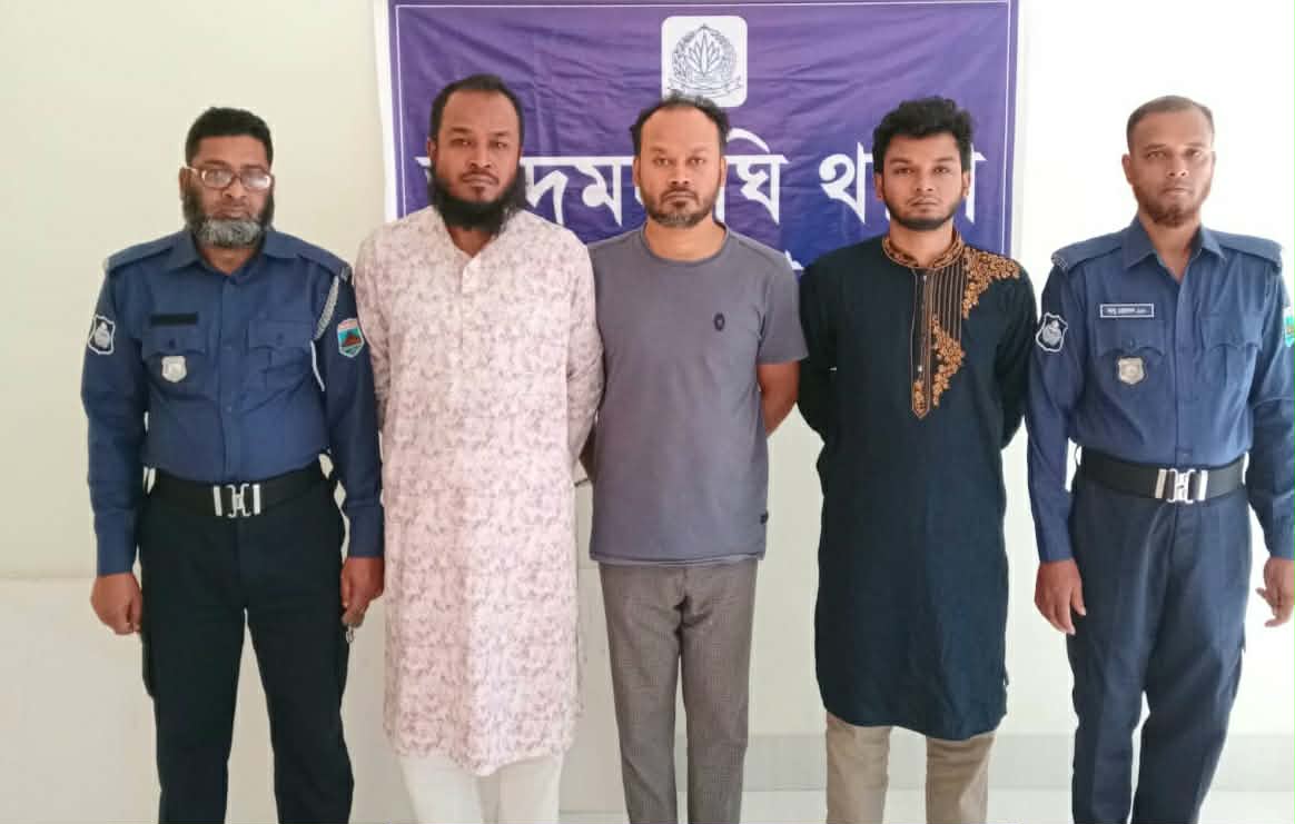 বগুড়ার আদমদীঘিতে আদালতের নিষেধাজ্ঞা অমান্য করে জোরপূর্বক মার্কেট দখলের চেষ্টায় আপন তিন ভাইকে গ্রেপ্তার করেছে থানা পুলিশ। গ্রেপ্তারকৃতরা হলো- উপজেলার সান্তাহার বাজার এলাকার আব্দুর রাজ্জাকের ছেলে সেতু (৪০), সানী (৩৭) ও হাসিবুর রহমান (২৫)। রোববার দুপুরে থানা পুলিশ গ্রেপ্তারকৃতদের বগুড়া আদালতে পাঠিয়েছে। এর আগে গত ১৯ ফেব্রয়ারী আব্দুল্লাহ আল কাফি নামের এক ভুক্তভোগীর মামলার পরিপ্রেক্ষিতে আদালত থেকে ওই মার্কেটের ওপর ১৪৪ ধারা জারি হয়।