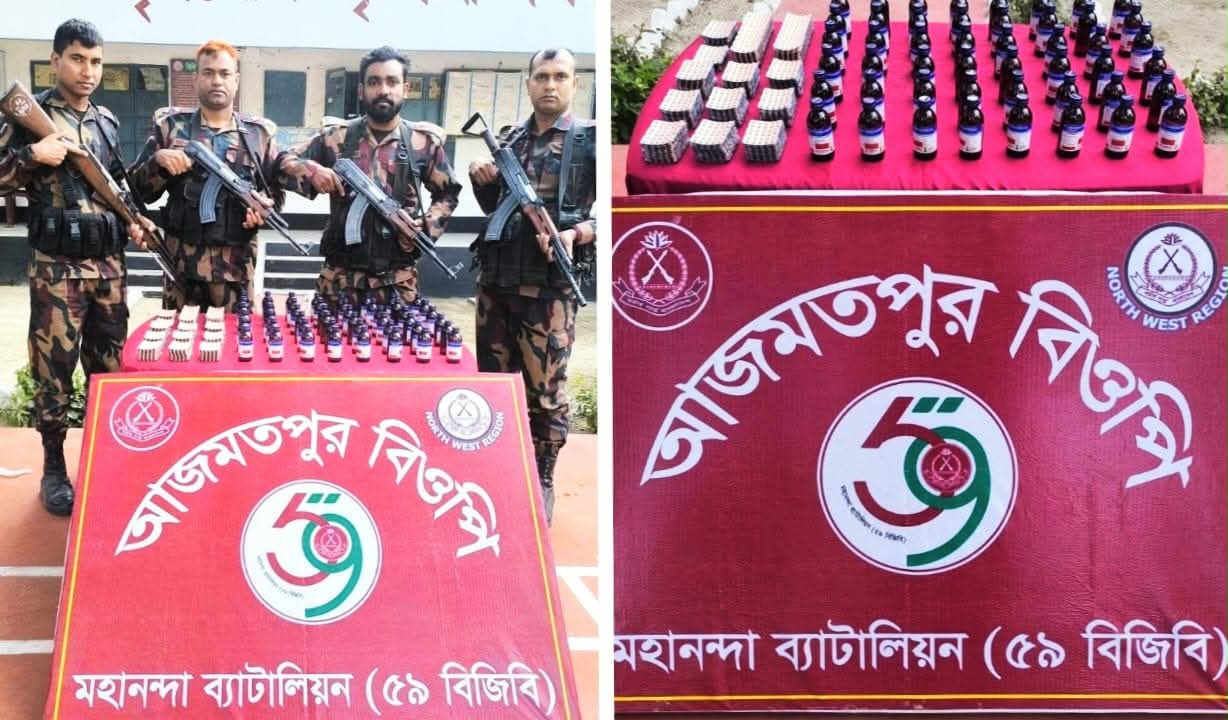 চাঁপাইনবাবগঞ্জ শিবগঞ্জ উপজেলার সীমান্তে মাদক চোরাচালানের বিরুদ্ধে আভিযানিক সাফল্যের ধারা অব্যাহত রেখেছে মহানন্দা ব্যাটালিয়ন (৫৯ বিজিবি)। গতকাল ১৫ ডিসেম্বর তারিখ রাত সাড়ে ৩ ঘটিকায় গোপন সংবাদের ভিত্তিতে চাঁপাইনবাবগঞ্জ জেলার শিবগঞ্জ সীমান্ত হতে ৪৭২০ পিস ভারতীয় নেশাজাতীয় ট্যাবলেট (TENSIWIN) এবং ফেন্সিডিল এর বিকল্প হিসেবে ব্যবহৃত ৪৮ বোতল নেশাজাতীয় সিরাপ (CHOCO+) আটক করেছে এ ব্যাটালিয়ন। আজমতপুর বিওপি’র একটি বিশেষ টহল দল সীমান্ত মেইন পিলার ১৮২ হতে আনুমানিক ৫০ গজ বাংলাদেশের অভ্যন্তরে উপজেলার শাহাবাজপুর ইউনিয়নের বাগিচাপাড়া গ্রামে অভিযান চালিয়ে উল্লিখিত মাদকদ্রব্য জব্দ করে। এ বিষয়ে বিজিবি’র পক্ষ হতে আইনি প্রক্রিয়ার কাজ চলমান। এ ব্যাপারে মহানন্দা ব্যাটালিয়ন (৫৯ বিজিবি) এর অধিনায়ক লেঃ কর্নেল গোলাম কিবরিয়া, বিজিবিএম, বিজিওএম বিষয়টির সত্যতা নিশ্চিত করেছেন। তিনি বলেন, সাম্প্রতিক সময়ে নেশাজাতীয় ট্যাবলেটসহ ফেন্সিডিল এর বিকল্প হিসেবে নতুন নতুন মাদক চোরাচালান হচ্ছে, সকল প্রকার মাদক চোরাচালান প্রতিরোধে বিজিবি তৎপর রয়েছে।*