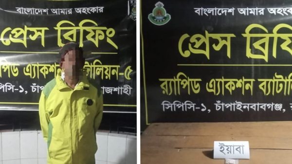 চাঁপাইনবাবগঞ্জ গোমস্তাপুরে র্যাব -৫ এর অভিযানে ইয়াবাসহ আটক ১