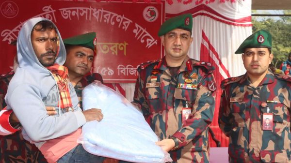 ৫৯ বিজিবির সীমান্তবর্তী ৩০০ পরিবারের মাঝে শীতবস্ত্র বিতরণ