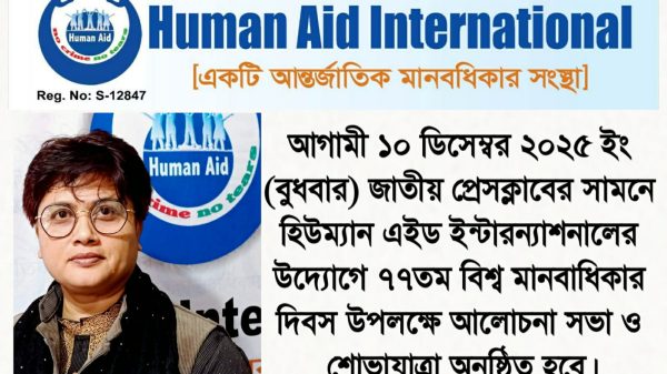 ১০ ডিসেম্বর হিউম্যান এইড ইন্টারন্যাশনালের উদ্যোগে মানবাধিকার দিবস উপলক্ষে আলোচনা সভা ও শোভাযাত্রা