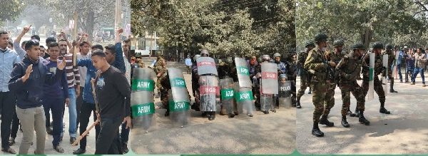 চাঁপাইনবাবগঞ্জে নির্বাচন বানচালের অপচেষ্টা প্রতিহতে যৌথ বাহিনীর মহড়া অনুষ্ঠিত