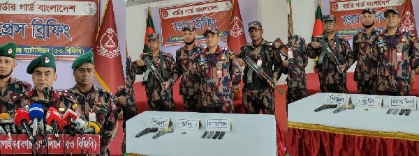চাঁপাইনবাবগঞ্জে ৫৩ বিজিবি’র অভিযানে ০২টি বিদেশী পিস্তল, ০৪ টি ম্যাগজিন ও গুলি ৩ রাউন্ড জব্দ