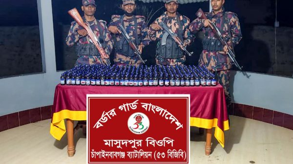 চাঁপাইনবাবগঞ্জ সীমান্তে বিপুল পরিমান ভারতীয় নেশাজাতীয় সিরাপ জব্দ করেছে ৫৩ বিজিবি
